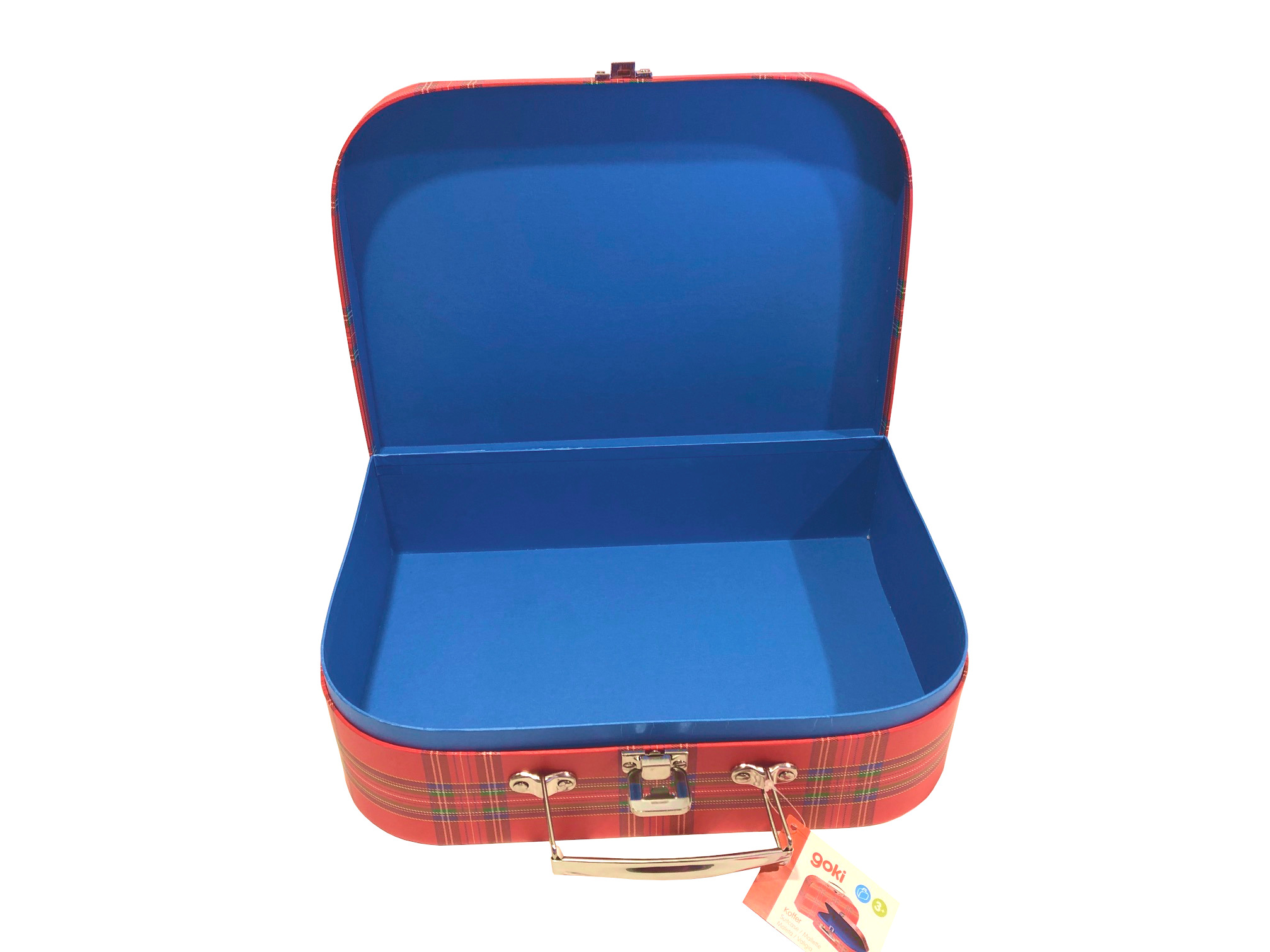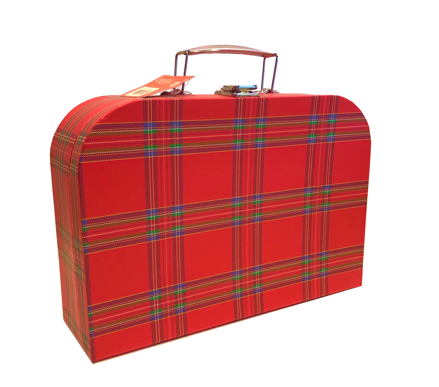 Kinderkoffer rot Schottenmuster Pappkoffer