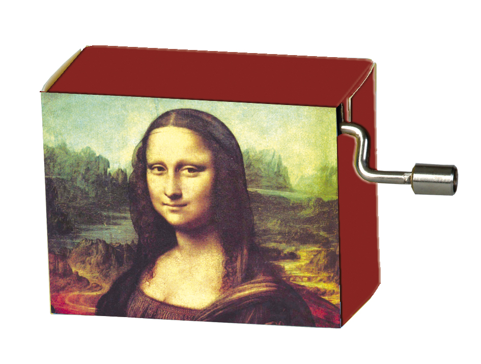 Das Spielwerk ist auf ein Resonanzplättchen aus Holz montiert. Mit ansprechender Dekorverpackung aus Pappe. Melodie: Für Elise von Ludwig van Beethoven Motiv-Box: Mona Lisa von Leonardo da Vinci