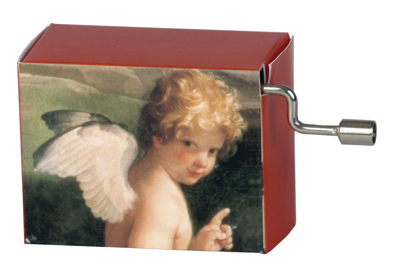Das Spielwerk ist auf ein Resonanzplättchen aus Holz montiert. Mit ansprechender Dekorverpackung aus Pappe. Melodie: O Maria Motiv-Box: Engel mit Zeigefinger