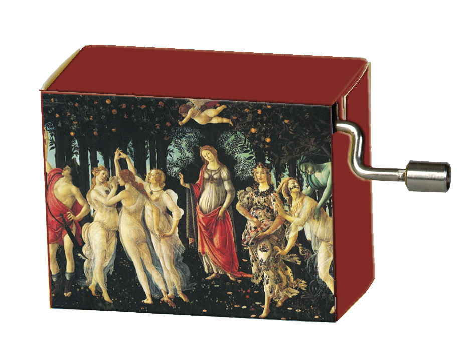 Das Spielwerk ist auf ein Resonanzplättchen aus Holz montiert. Mit ansprechender Dekorverpackung aus Pappe. Melodie: Ode an die Freude von Ludwig van Beethoven, Motiv-Box: Primavera von Sandro Boticelli
