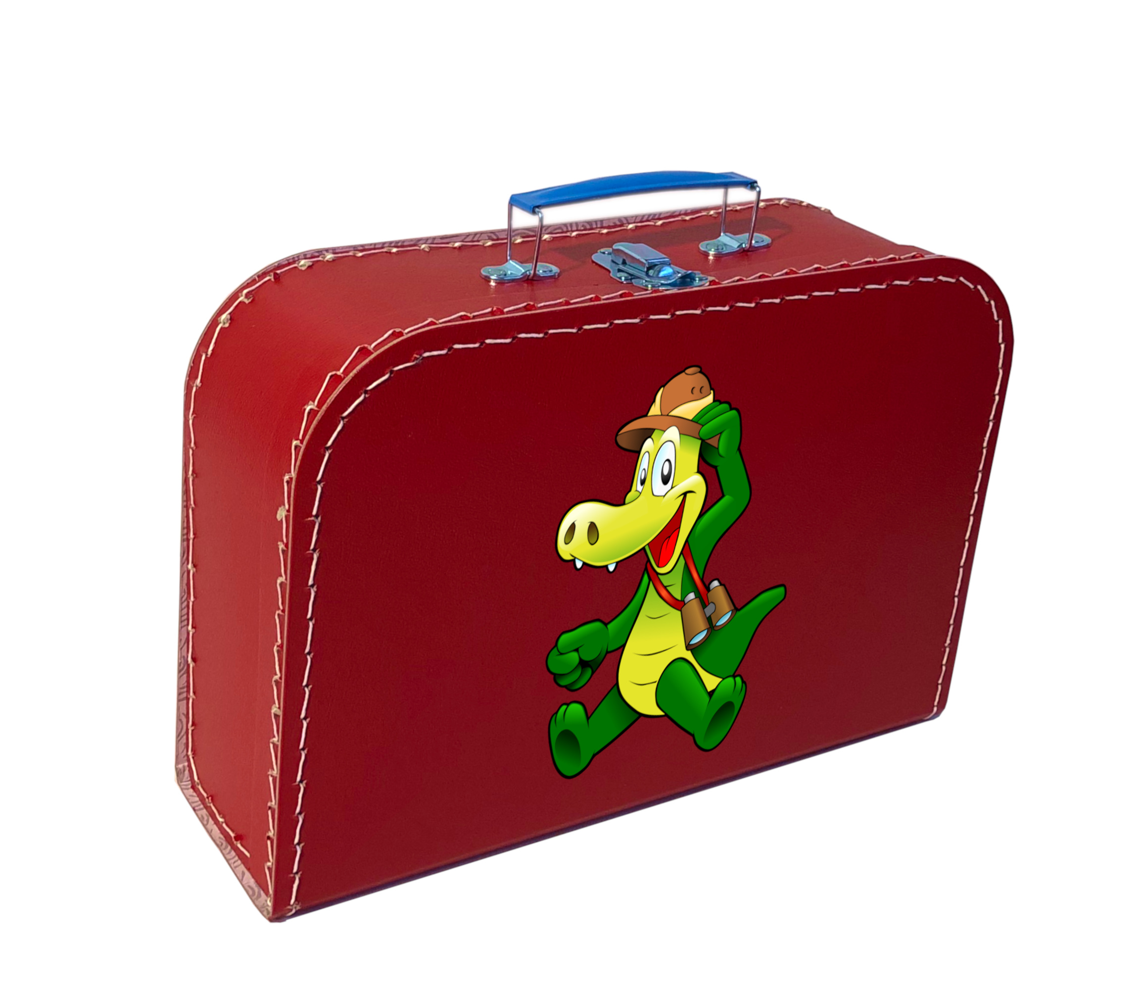 Pappkoffer rot Kinderkoffer mit lustigem Krokodil