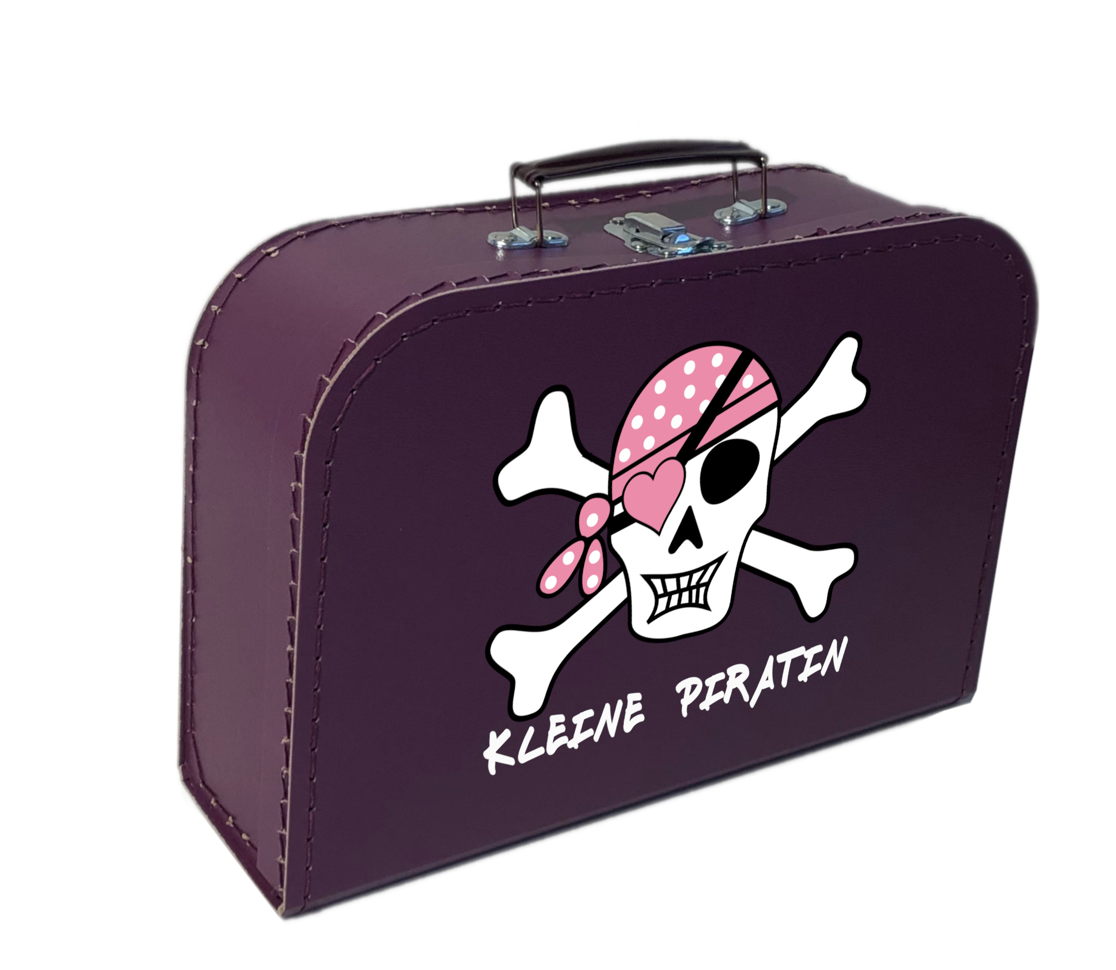 Pappkoffer violett Kleine Piratin mit Totenkopf
