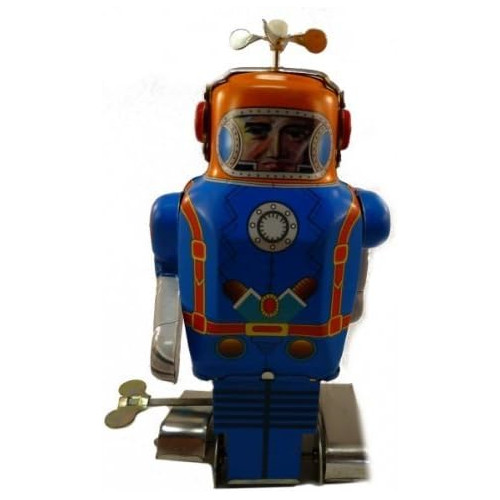 Roboter Astronaut auf Raupenfüßen, blau, JMT, Blechspielzeug