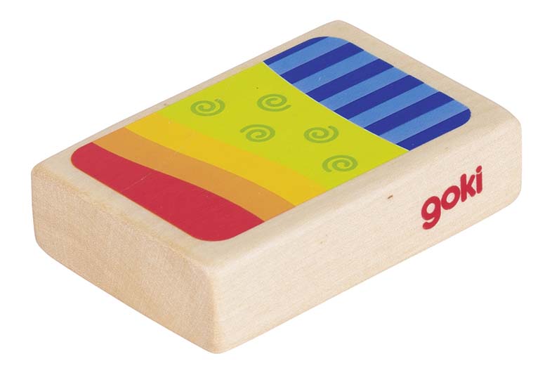 Der Shaker besteht aus Holz und erstrahlt in den bunten Farben, die Kinder so lieben.